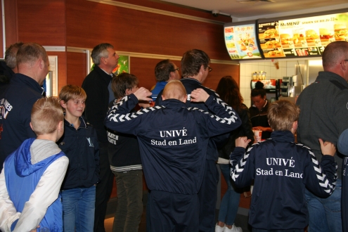 .... en zo gingen we opweg naar Duitsland, met 2 busjes voor de kids en het kader, en 2 auto's vol met vaders, op naar Datteln, hopplake 160 km rijden. Om half 2 moesten onze jongens de eerste wedstrijd, deze werd gelijk gespeeld tegen FC Padenborg, dat is een leuk begin.